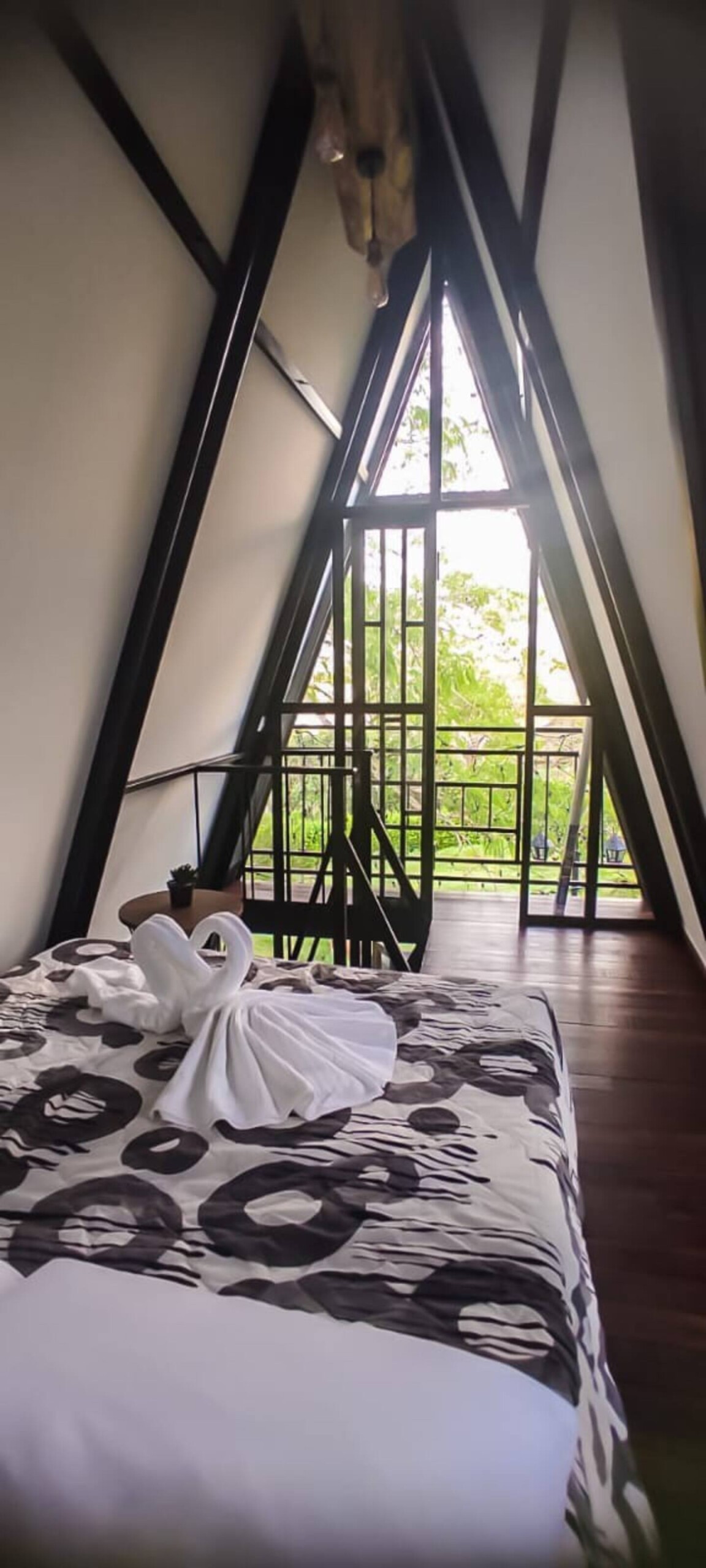 la cabaña cuenta con deck, malla catamarán, jacuzzi privado para su disfrute y comodidad, mini bar, zona de hamacas, cocineta, asador, neverita, sonido, tv, cama doble, sofá cama, baño privado, aire acondicionado, balcón con vista hacia las montañas, comedor al aire libre.